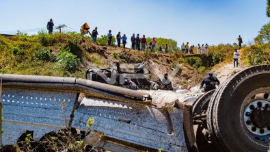 Dejó saldo de tres personas lesionadas y un muerto aplastado dentro de su camioneta. La tragedia sucedió en la salida de Tepic a Mazatlán, a la altura del poblado de Lo de Lamedo, donde se vio afectado un tercer vehículo