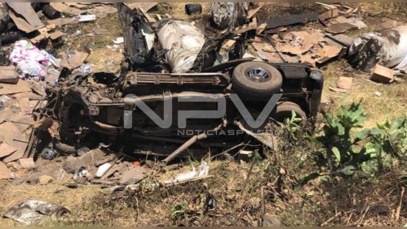 Asimismo, se encontraba un vehículo de la marca Toyota, sub marca Highlander, en color blanca, con pérdida total, misma que tuviera en su interior a una persona del sexo masculino prensada, ya sin signos vitales, donde también arribara una mujer que aparentemente fuera familiar del masculino, quien fue canalizada ya que presentaba una crisis nerviosa.