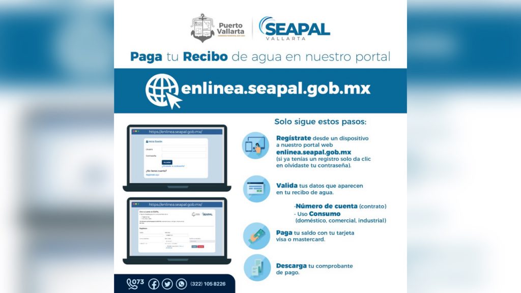 Se trata de la plataforma disponible en https://enlinea.seapal.gob.mx/, cuya creación de una cuenta es totalmente gratuita, sólo requiere tener acceso a una computadora o dispositivo móvil con conexión a internet, una cuenta de correo electrónico y el recibo de SEAPAL Vallarta para el registro.