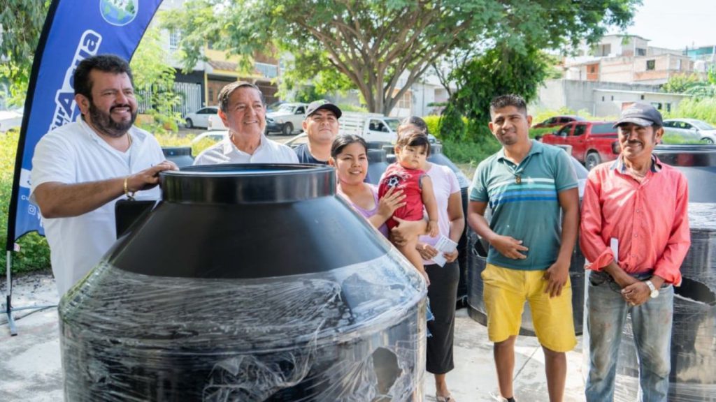 Noel de la Cruz y Nora Edith Guerra López, vecinos de la colonia San Miguel, además de Yolanda Morales Caballero, de Brisas del Pacífico II, de manera simbólica recibieron los tinacos durante el evento, para dar paso al operativo que permite llevar estos medios de almacenamiento a los hogares beneficiados.