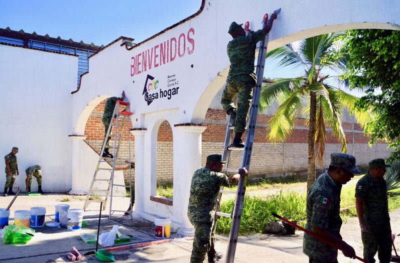 La publirrelacionista Melissa Madero en coordinación con la 41.ª zona militar de la Secretaría de la Defensa Nacional, están llevando a cabo labores de rehabilitación de espacios en la Casa Hogar Maximo Cornejo de Puerto Vallarta. En el marco de su 26 aniversario, una cuadrilla de 14 elementos llevó cabo labores de limpieza, pintura y rehabilitación de la fachada principal de esta noble institución y durante la rehabilitación del espacio, el personal militar recorrió las instalaciones donde pudieron conocer de primera mano los retos en infraestructura que enfrenta esta institución.
