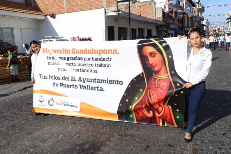 Con flores, ofrendas y carros alegóricos, los servidores públicos del Ayuntamiento de Puerto Vallarta, se unieron este miércoles a las tradicionales peregrinaciones en honor a la Virgen de Guadalupe, celebración que es ya Patrimonio Inmaterial del estado de Jalisco y de este municipio.