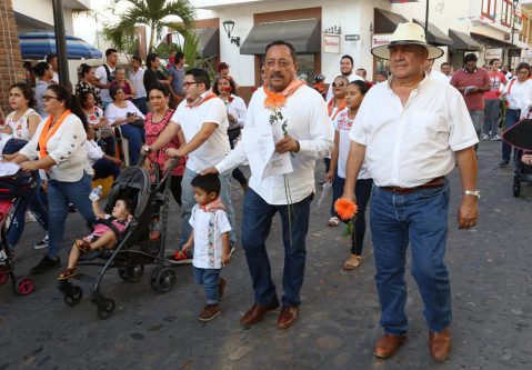El presidente municipal, Arturo Dávalos Peña y su esposa Candelaria Tovar de Dávalos, presidenta del Sistema DIF, junto a sus hijas, encabezaron el contingente de regidores y funcionarios municipales que organizados en 23 bloques, realizaron el recorrido hasta la iglesia de Guadalupe, muchos de ellos acompañados por sus familias, para dar gracias por los favores recibidos este año, preservando esta tradicional fiesta de los vallartenses.