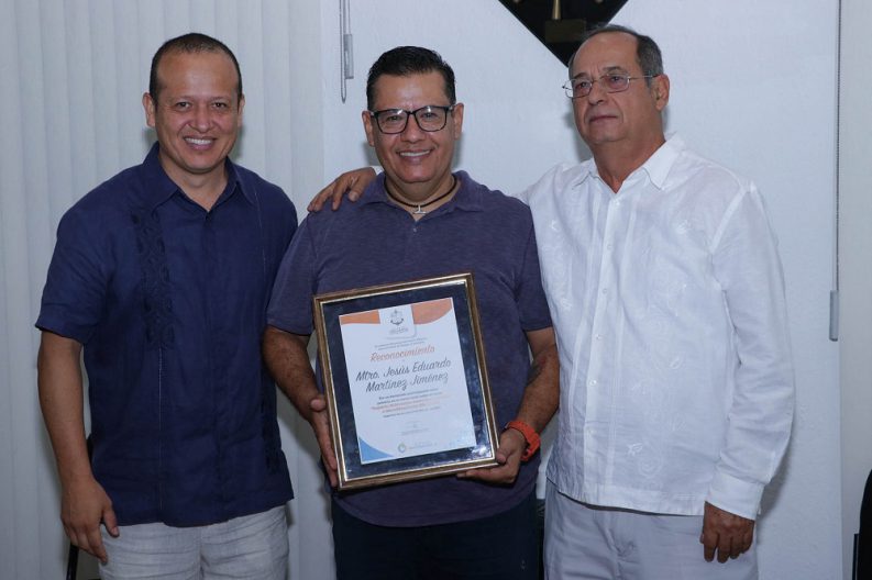El funcionario entregó a nombre del alcalde vallartense, un reconocimiento al maestro Jesús Eduardo Martínez Jiménez, a quien agradeció su colaboración y apoyo a este Gobierno Municipal.
