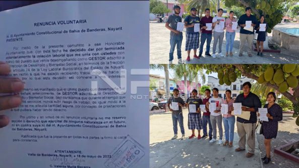 Durante la mañana de este miércoles 18 de Mayo 2022, siete trabajadores del Ayuntamiento de Bahía de Banderas, presentaron ante la Tesorería su renuncia con carácter de irrevocable.