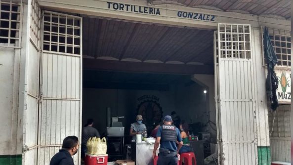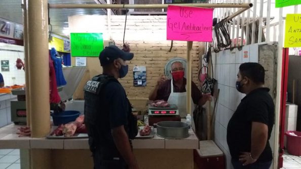 El personal en conjunto realiza recorridos en los diferentes establecimientos comerciales de la cabecera municipal, donde se monitorea que se dé cumplimiento a las medidas de prevención que emiten las autoridades sanitarias, como es el uso de cubrebocas, uso de gel antibacterial y la sana distancia.