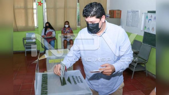 El presidente municipal interino de Puerto Vallarta, Jorge Quintero, votó sin problemas en la casilla ubicada en la colonia El Caloso.
