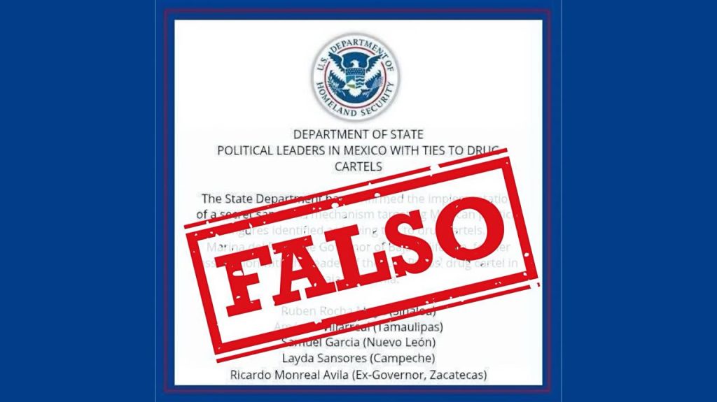 A través de sus cuentas oficiales, la representación diplomática calificó como falsa la información y compartió una imagen del documento apócrifo, que incluía nombres como Rubén Rocha Moya (gobernador de Sinaloa), Samuel García (gobernador de Nuevo León), Layda Sansores (gobernadora de Campeche) y Ricardo Monreal (exgobernador de Zacatecas), entre otros.
