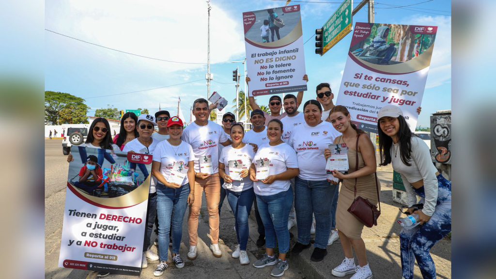 Con el propósito de erradicar el trabajo infantil, el Sistema DIF de Puerto Vallarta que preside María de Jesús López Delgado, dio inicio a la campaña de concientización y prevención ‘Di NO al trabajo infantil’ en las inmediaciones del crucero de El Pitillal y Zona “Romántica” de Olas Altas; siendo la prevención, atención, seguimiento y capacitación, las cuatro etapas de la estrategia conjunta entre el organismo, la sociedad y las cámaras empresariales, donde además se dan a conocer los programas asistenciales para apoyar a las y los infantes.