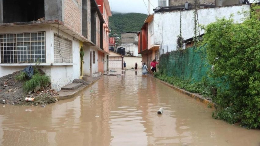 En Apatzingán se desbordó el río Grande afectando a las localidades de Las Bateas y El Capire, en tanto, el puente de acceso a la tenencia de San José de Chila colapsó ante la intensidad de la corriente.