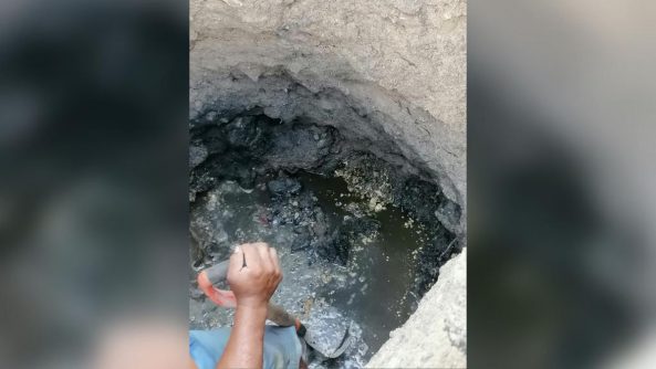 Este martes 27 de octubre, se atendió un reporte por un taponamiento provocado por objetos sólidos que se encontraron en una línea sanitaria próxima a un arroyo en calle Palmares, Fraccionamiento Sendero de Luna.