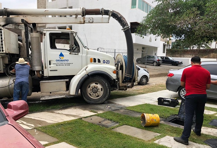 “Reportaron un derrame de aguas negras del edificio Ibis, localizado en La Cruz de Huanacaxtle. Al verificar nuestra área de recolección y saneamiento, encontraron que en dicho edificio, se les averió su sistema de cárcamo interno, al quemarse la bomba del emisor de aguas residuales, por lo que se apresuró la cuadrilla especializada para darle rápida solución y evitar olores y un posible foco infeccioso en el lugar”, señaló el director del OROMAPAS, José Mercado.