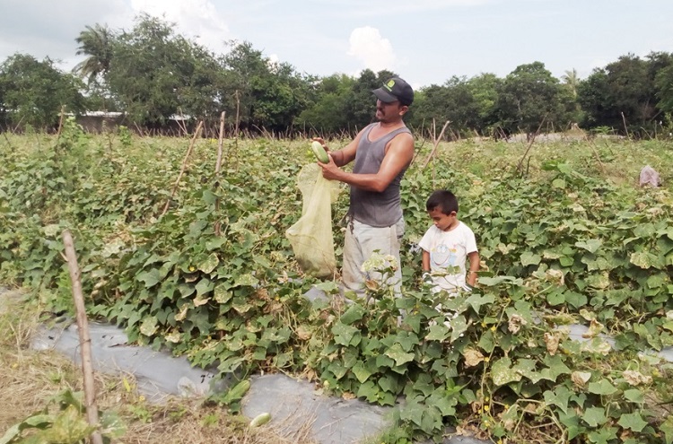 *Acompañado de su hijo de apenas 6 años de edad, Arturo Corona, siembra y cosecha pepinos en su rancho El Patrón, ubicado en Tondoroque, muy cerca de la carretera 200 “El mercado es muy bueno en Bahía de Banderas, el pepino es codiciado, toda la cosecha ya está comprometida, claro que se puede vivir como pequeño agricultor” comenta