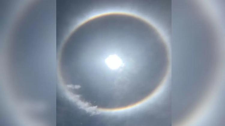 Ante el sorpresivo temblor, los usuarios difundieron la aparición de este fenómeno de un aro alrededor del Sol, también conocido como halo solar, quienes de inmediato hicieron virales las imágenes.