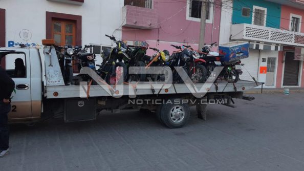 Fueron al menos diez motocicletas las que aseguraron los oficiales de la Policía Vial de Bahía de Banderas, quienes coordinados con Policias Municipales, realizaron el trabajo y luego solicitaron la presencia de una grúa en la que fueron llevados dichos vehículos de dos llantas al corralón, donde fueron remitidas quedando a disposición de la autoridad competente para los trámites correspondientes.