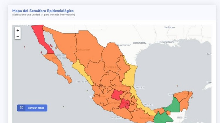 Tres entidades continúan en amarillo, considerado de riesgo medio, y son Sinaloa, Tamaulipas y Veracruz, mientras que dos siguen en verde de riesgo bajo: Campeche y Chiapas. El resto de las entidades continúa en naranja