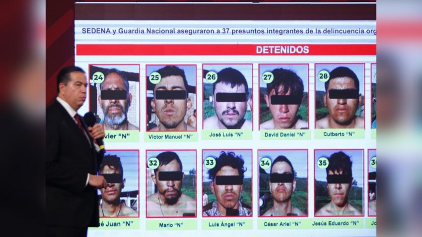 Además, la Secretaría de la Defensa Nacional (Sedena) en coordinación con la Guardia Nacional, aseguraron a 37 presuntos integrantes de la delincuencia organizada en Ciudad Hidalgo, Michoacán, señalados como integrantes del Cártel Jalisco Nueva Generación, y quienes disputaban territorios con el grupo de La Familia michoacana y otro grupo más.