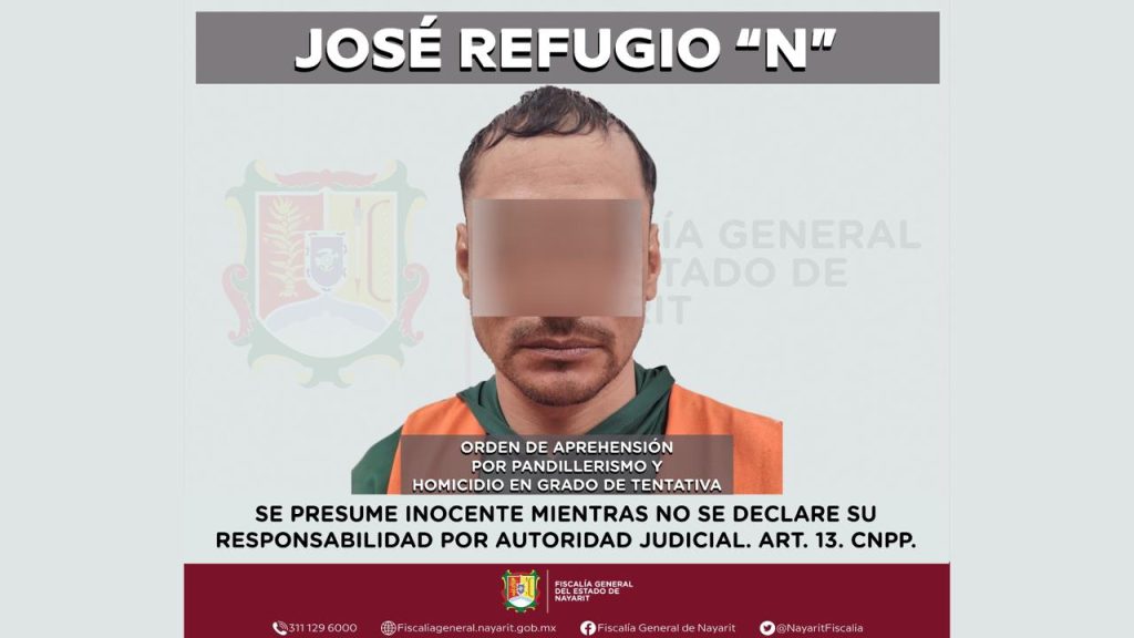 La Fiscalía General del Estado de Nayarit informó que, en coordinación con su homóloga de Jalisco, agentes de la Agencia de Investigación Criminal cumplimentaron una orden de aprehensión en contra de José Refugio “N”, por su probable responsabilidad en los delitos de pandillerismo y homicidio en grado de tentativa.