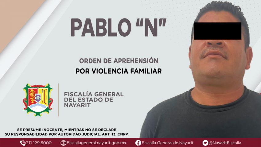 La Fiscalía General del Estado, a través de la Agencia de Investigación Criminal, dio cumplimiento a una orden de aprehensión en el municipio de Bahía de Banderas contra Pablo «N» por su presunta participación en hechos que, según la apreciación de la ley, configuran el delito de violencia familiar.
