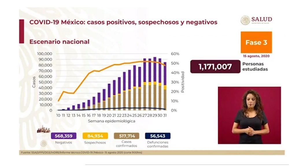 México llegó a los 517 mil 714 casos confirmados totales de COVID-19, informó este sábado José Luis Alomía, director general de Epidemiología.