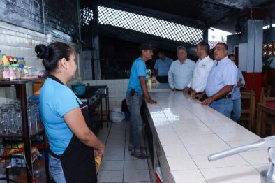 En esta visita, el presidente municipal estuvo acompañado por el director de Desarrollo Social, Víctor Bernal Vargas; el titular de Mantenimiento de Bienes e Intendencia, Eugenio González Márquez; la directora de Comunicación Social, Sara María Chávez Medina; la jefa de Mercados Municipales, Josefina Ibarría Macedo, y Lucila Alcaraz Cisneros, de Fomento Económico.