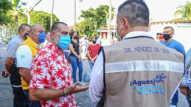 Para verificar el cumplimiento de las medidas de prevención y restricciones que implica la aplicación del ‘Botón de Emergencia’ en Puerto Vallarta, el presidente municipal, Arturo Dávalos Peña y el director general del Organismo Público Descentralizado (OPD) Servicios de Salud en el estado, José de Jesús Méndez de Lira, realizaron un recorrido este fin de semana por el malecón y diferentes puntos de la ciudad, en donde compartieron además recomendaciones e invitaron a la gente a adoptar los protocolos sanitarios como es el uso del cubrebocas.