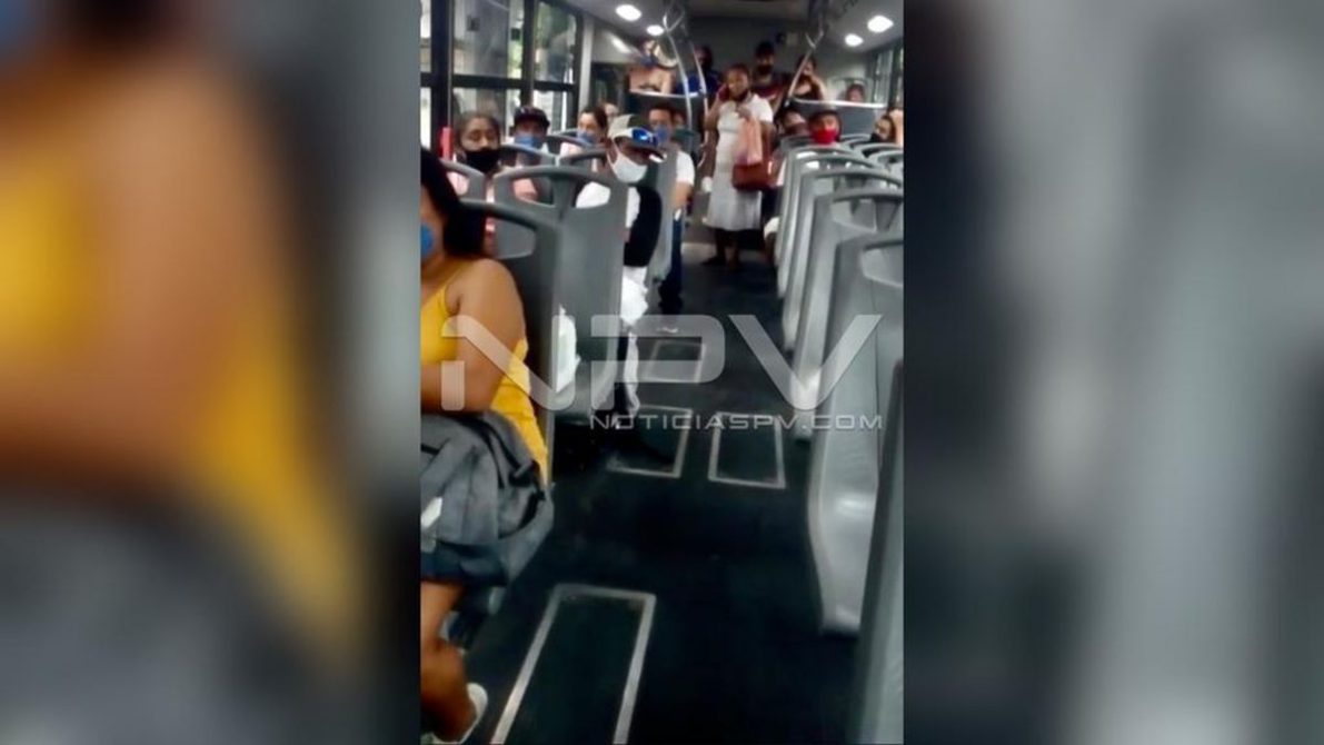 En un video, se observa como una señora trae el cubrebocas en el cuello y va hablando por el celular, lo que motivó que el chofer, le pidiera amablemente se lo colocará por la contingencia del Covid-19; a la postre esta persona denunció los hechos ante UnibusPV y CTM, como resultado el chofer fue suspendido una semana.
