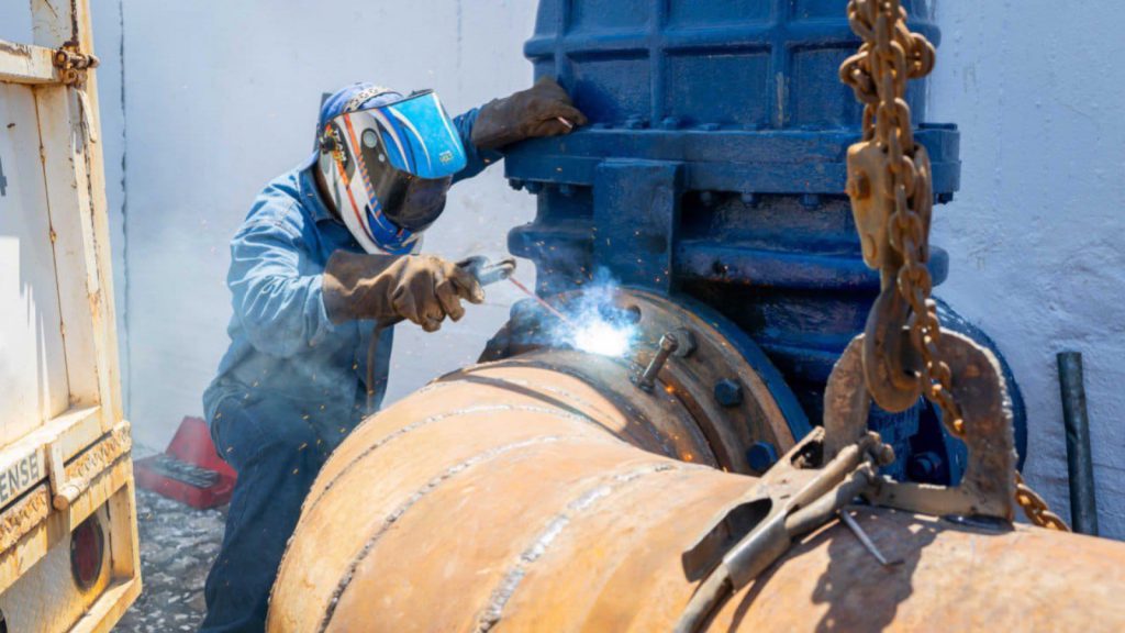 El personal de Producción de Agua Potable realizó maniobras durante varias horas para la sustitución de una extremidad de la tubería de 24 pulgadas de diámetro en acero, la cual tras 35 años de funcionamiento ha concluido su periodo de vida útil.