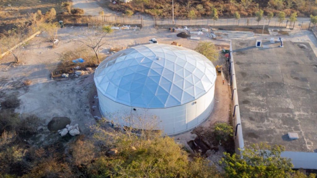 Precisó que se trata de un tanque de 6 mil metros cúbicos fabricado en vidrio fusionado en acero, con el cual se avanza para mitigar la intermitencia en el suministro de agua potable en alrededor de 50 colonias de la parte alta de la delegación El Pitillal, ocasionado mayormente por el periodo de estiaje crítico.