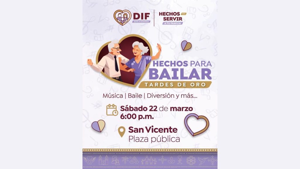 El DIF Bahía de Banderas invita a los adultos mayores a disfrutar de una tarde especial con “Hechos para Bailar: Tardes de Oro”, un evento diseñado para brindarles alegría, convivencia y mucha música.