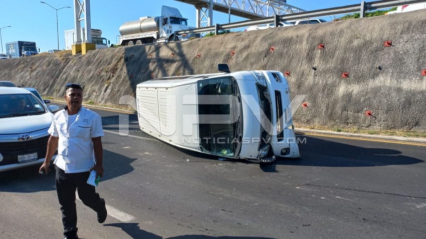 Elementos de la policía municipal así como personal de Protección Civil y Bomberos, fueron activados rápidamente al ser enterados de lo sucedido poco antes de las 10 de la mañana de este jueves, por lo que rápidamente llegaron al sitio donde encontraron volcada sobre su costado derecho, una camioneta Urvan en color blanco, con placas del servicio público, siendo un taxi de Bucerías.