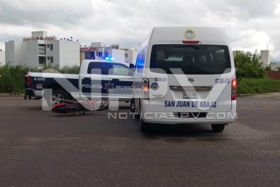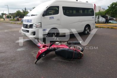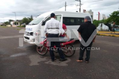 Al lugar llegaron como primeros respondientes los elementos de la Policía Municipal, a bordo de la unidad radiopatrulla S-090, con dos agentes a bordo, quienes se hicieron cargo de tomar nota del accidente y luego solicitaron la presencia de una ambulancia para que revisaran a los tripulantes de la motocicleta de la marca Italika, de color rojo, sin placas de circulación, quienes se quejaban de los golpes recibidos al momento de chocar contra una Urvan, de la marca Nissan de color blanco, con numero economico GCBB-435 y placas de circulacion 53-76- MDE, del transporte público de Nayarit, al servicio de taxi colectivo del sitio San Juan de Abajo.