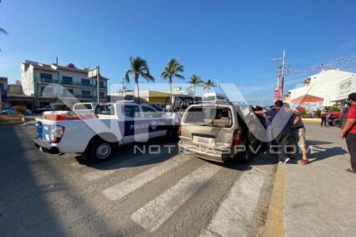 Taxi colectivo de la ruta Colomo-Puerto Vallarta, chocó por alcance contra una camioneta familiar, provocando que la misma se impactará contra un auto Jetta, resultando varias personas golpeadas, mismas que fueron revisados en el lugar por los paramédicos de Protección Civil, de los cuáles no hubo necesidad de trasladarlos a algún hospital, ya que sus lesiones fueron menores y no lo ameritaban.