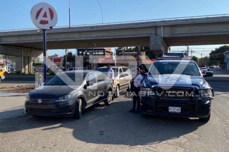 Taxi colectivo de la ruta Colomo-Puerto Vallarta, chocó por alcance contra una camioneta familiar, provocando que la misma se impactará contra un auto Jetta, resultando varias personas golpeadas, mismas que fueron revisados en el lugar por los paramédicos de Protección Civil, de los cuáles no hubo necesidad de trasladarlos a algún hospital, ya que sus lesiones fueron menores y no lo ameritaban.
