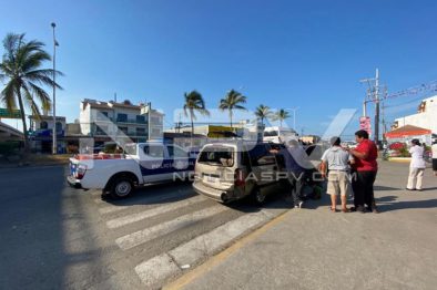 Hasta ese lugar arribó el personal de Protección Civil Municipal, a bordo de sus unidades, junto con elementos de la Policía Vial, quienes se percataron del accidente, informando que se trata de un taxi colectivo tipo Urvan, de color blanco, con las placas de circulación 72-00 MDE del estado de Nayarit, el cual se impactó por la parte trasera contra una camioneta Chevrolet, Venture, de color café, con placas RGB-81-07, del estado de Nayarit.