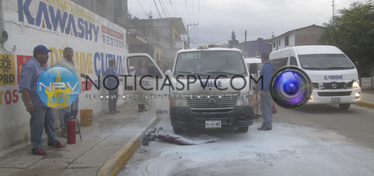 Una Urvan del transporte público de Bahía de Banderas, al servicio de taxi colectivo se prendió fuego cuando circulaba por la avenida principal de El Porvenir, Nayarit, en donde afortunadamente varios voluntarios lograron apagar las llamas antes de que este se consumiera, sin reportarse víctimas que lamentar, aunque se dijo que el vehículo de alquiler iba repleto de pasajeros, quienes por suerte resultaron ilesos.