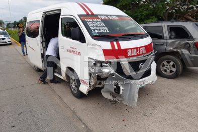 La fémina que conducía la camioneta Cherokee, presuntamente provoca el accidente impactándose contra un taxi colectivo de la ruta San Juan-Punta de Mita, de la marca Nissan, tipo Urvan, de color blanco, modelo 2019, con placas de circulación 95-06-MDE, del transporte público de Nayarit, que conducía una persona del sexo masculino de nombre Luis Eulalio, vecino de la calle Clavel, de la colonia Villa del Roble, en Tepic Nayarit.