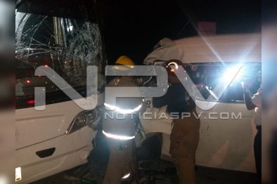 Brutal y sangriento accidente se registró la noche de este lunes poco antes de la medianoche en el municipio de Bahía de Banderas, en donde un taxi colectivo que iba cargado de pasajeros, se estrelló de frente contra un camión del grupo Vidanta de la ruta La Misión, el cual transportaba trabajadores.