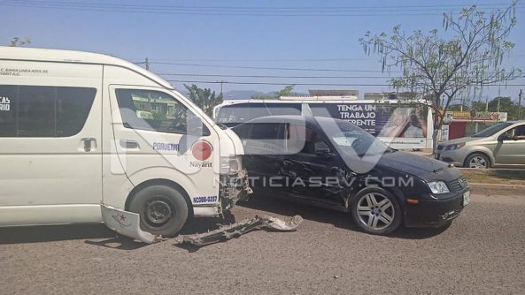 Hasta ese sitio arribaron los agentes de Tránsito Municipal, quienes se percatan del accidente y luego informan a su base operativa que se trata de dos vehículos involucrados, un taxi colectivo de la marca Toyota, tipo Urvan, de color blanco, con placas 67-16-MDE, de Nayarit, del sitio El Porvenir y un auto Jetta, con placas de circulacion JKY-80-75 de Jalisco.