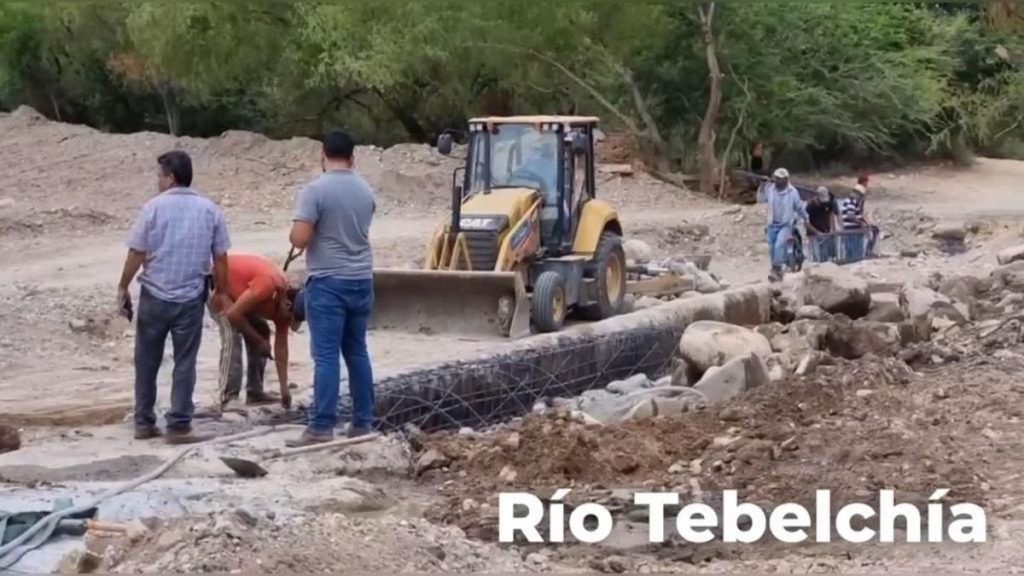 La obra de la reconstrucción del vado en el Río Tebelchía, avanza gracias al trabajo conjunto del gobierno municipal que encabeza el profesor Luis Alberto Michel Rodríguez, con los ejidos de Las Palmas y Tebelchía.