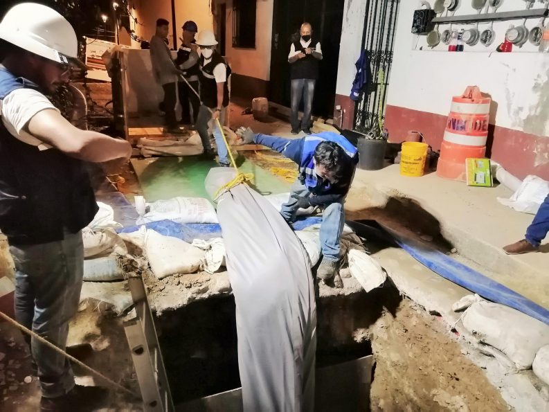 Cabe recordar que este colector colapsó a finales del mes de julio, desde entonces y de manera oportuna, inició el proceso de reconstrucción con tareas previas de limpieza y desazolve para retirar sólidos de la tubería, por medio de equipos de alta dinámica y alto vacío, así como “malacates”.