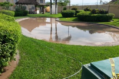 La tormenta que se registró la madrugada de este sábado 27 de julio 2019 dejó visto que las obras antes mencionadas provocaron que su barda perimetral se pueda venir abajo porque soportan la acumulación de agua de lluvias a manera de alberca, agua que se escurre por entre dicha pared provocado por toneladas de tierra que a un costado de este fraccionamiento se expandieron casi a lo largo de este fraccionamiento y que provocan la acumulación de la corriente natural del agua de lluvias, según señalan colonos de esta comunidad.