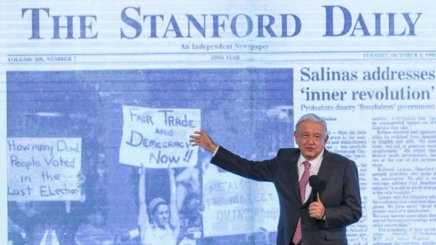 El mandatario destacó aquella imagen que recientemente ha vuelto a ser retomada por gran parte de la ciudadanía y diversos actores, cuando Sheinbaum Pardo, siendo estudiante de doctorado en 1991 en la Universidad de Stanford, Estados Unidos, se manifestó ante la presencia en ese país del entonces presidente Carlos Salinas de Gortari.