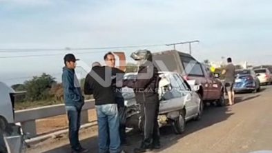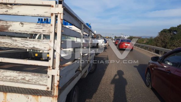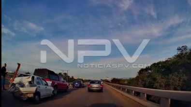 Aparatosa carambola se registró la mañana de este jueves sobre los carriles que llevan de sur a norte, exactamente en el puente Ameca, en la salida a Bahía de Banderas, en donde se vieron involucrados cinco vehículos, uno de los cuales quedó destrozado.
