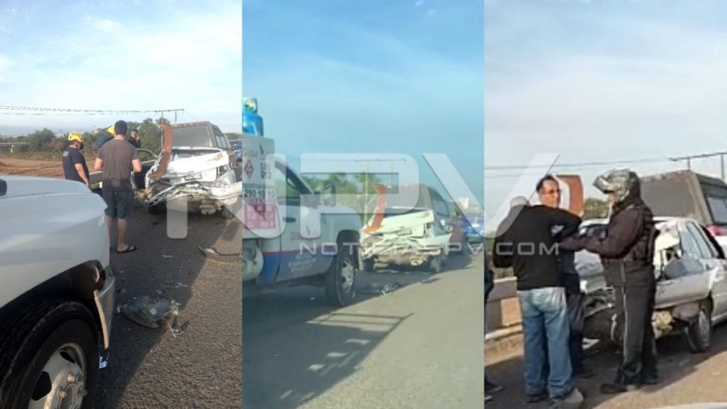 Aparatosa carambola se registró la mañana de este jueves sobre los carriles que llevan de sur a norte, exactamente en el puente Ameca, en la salida a Bahía de Banderas, en donde se vieron involucrados cinco vehículos, uno de los cuales quedó destrozado.