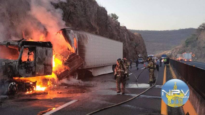 Terrible incendio de un tráiler en autopista Tepic Guadalajara