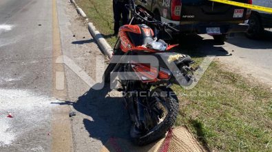 Motociclista Canadiense murió aplastado por una Góndola que lo arrolló y lo arrastró por varios metros en el carril de norte a sur del Boulevard Riviera Nayarit, en Bucerías, quien quedó prácticamente destrozado y regadas sus viseras por todos lados en la carpeta asfáltica; el presunto responsable fue detenido en el lugar.