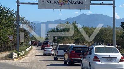 Terrible tráfico de vehículos se generó sobre el carril de norte a sur del Boulevard Riviera Nayarit, que causó un gran caos vial desde el puente el Marlin, en el ingreso a Nuevo Vallarta, en Bahía de Banderas, hasta el puente Ameca, en el ingreso a Puerto Vallarta.