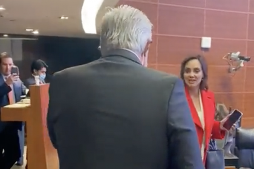 Este miércoles, en su cuenta de Twitter, Lilly Téllez publicó un video en el que encara a Narro Céspedes al momento de entrar ambos al pleno de la Cámara Alta.