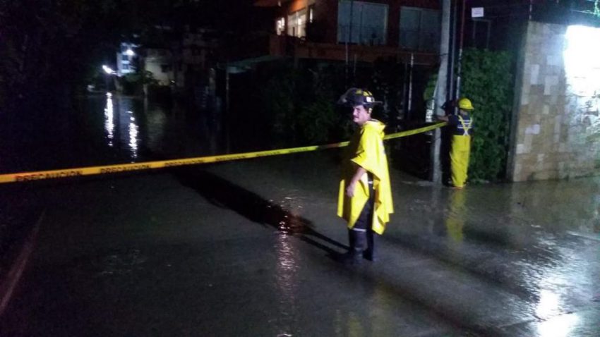 También se prestó auxilio a una persona que se reportaba había sido arrastrada por la corriente en la colonia 5 de Diciembre, acudiendo de forma inmediata elementos a bordo de la unidad B-85, quienes encuentran a un masculino en estado etílico, que había sido arrastrado por el agua pluvial hasta el mar encontrándose con dificultad para salir, apoyándolo y llevándolo a un área segura.